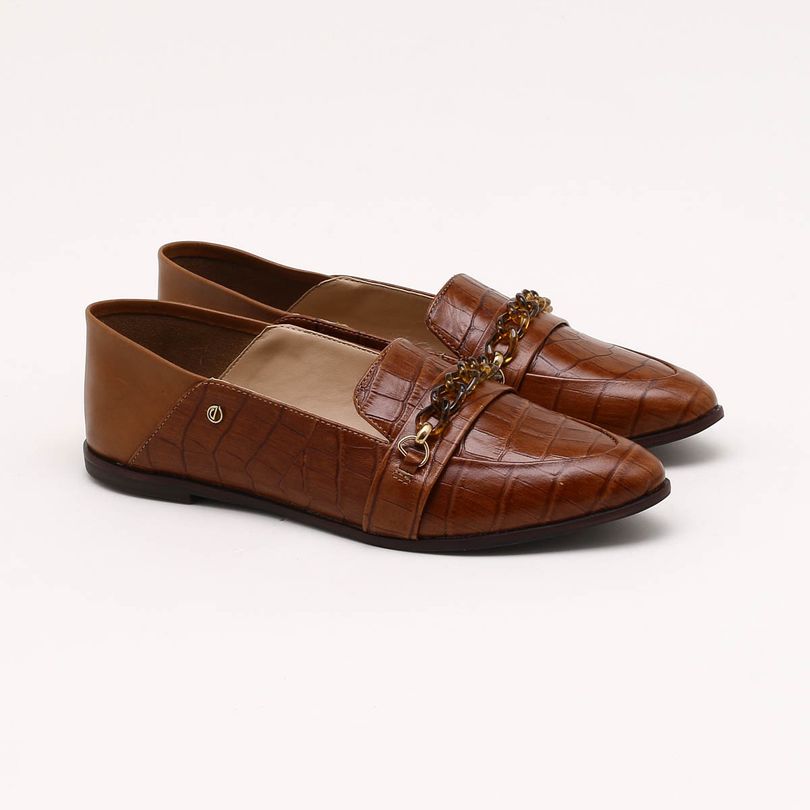 Loafer Couro Croco Marrom Noz